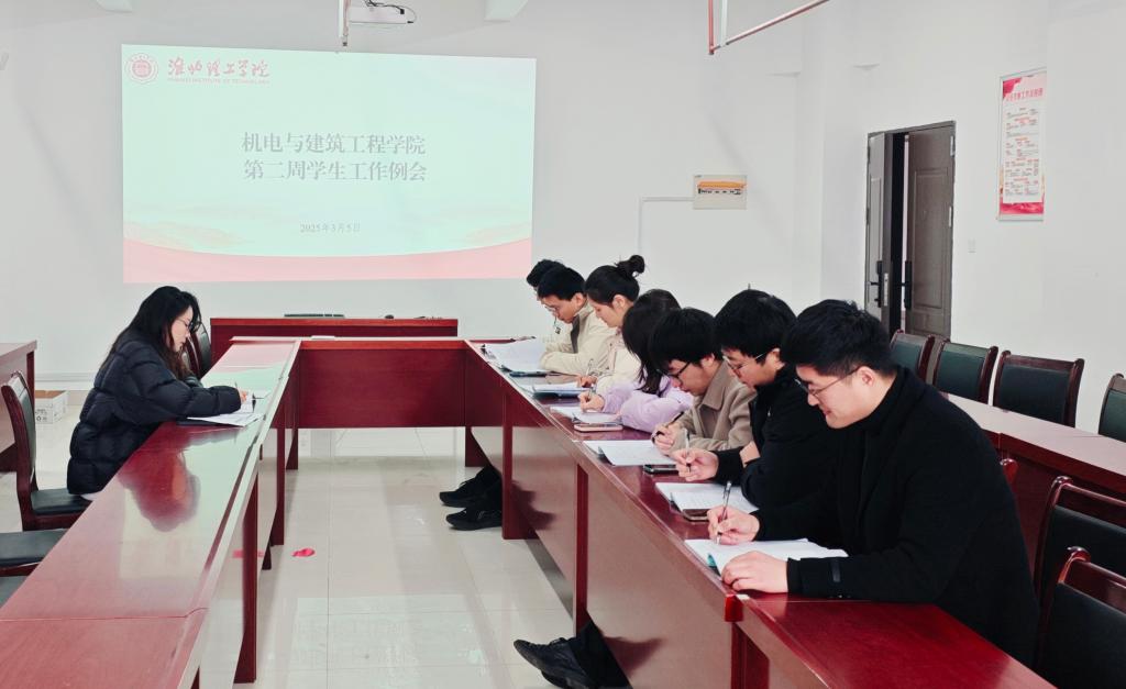 2025年3月5日9时,机电与建筑工程学院在行政楼214会议室召开2025年春季新学期第二次学生工作会议。会议由院党总支书记助理邓金鑫主持,院团总支书记张亚飞和全体辅导员参加会议。