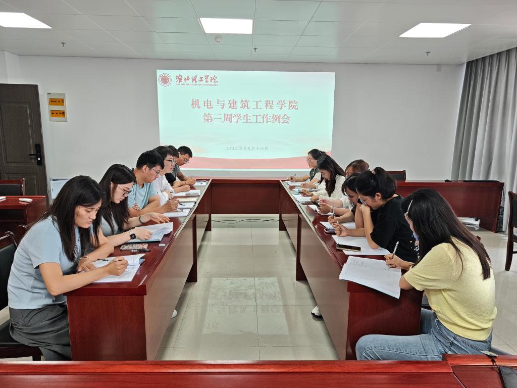 9月16日上午,机电与建筑工程学院在行政楼922会议室召开2025年秋季学期第三周学生工作例会。会议由学院党总支书记助理邓金鑫主持,学院全体辅导员参加会议。