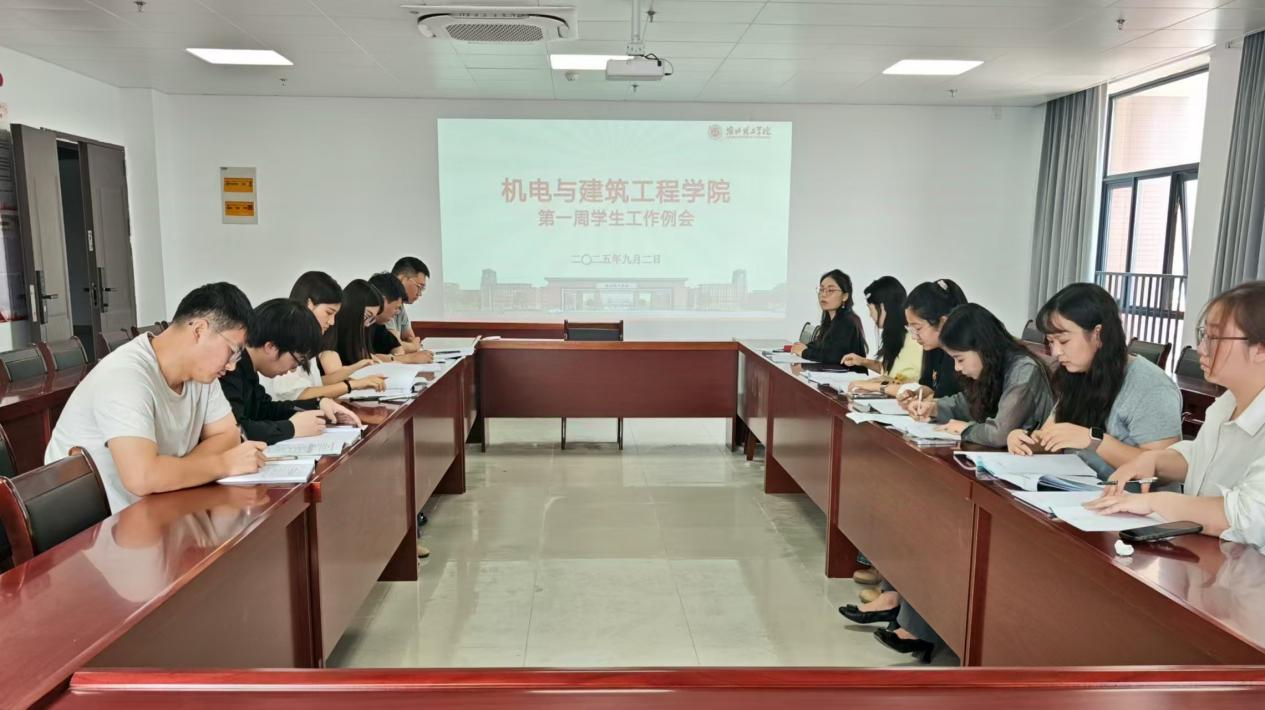 9月2日上午9时,机电与建筑工程学院在学院会议室召开了2025年秋季学期第一次学生工作会议,学院全体辅导员参会,会议由学院党总支书记助理邓金鑫主持,团总支书记张亚飞及全体辅导员参会。
