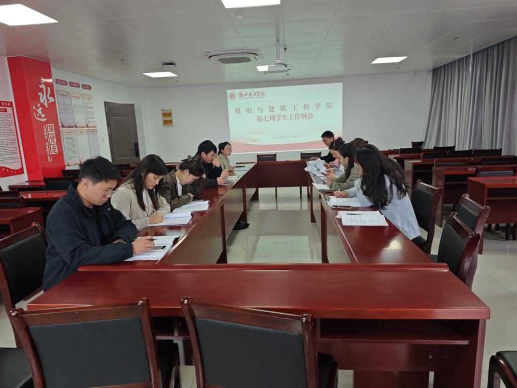 10月14日上午,机电与建筑工程学院在行政楼922会议室召开第七周学生工作例会。会议由学院党总支书记助理邓金鑫主持,团总支书记张亚飞及全体辅导员参会。