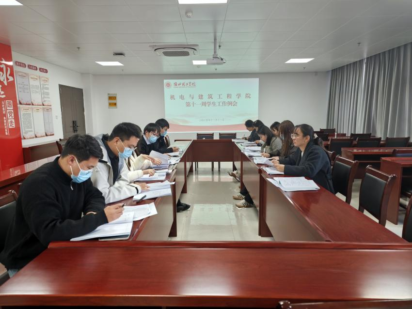 11月11日下午,机电与建筑工程学院在行政楼922会议室召开第十一周学生工作例会。会议由学院党总支书记助理邓金鑫主持,全体辅导员参会。