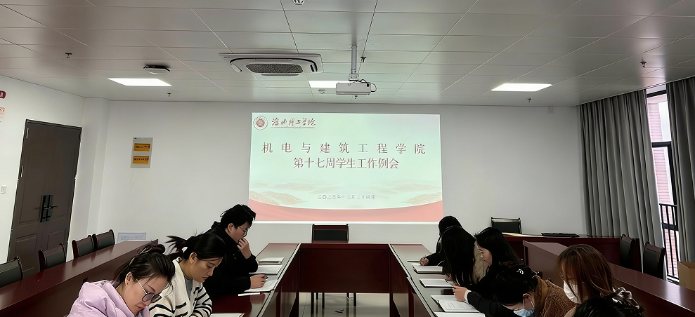2025年12月24日上午,机电与建筑工程学院在行政楼922会议室召开本学期第十七周学生工作例会。会议由学院党总支书记助理邓金鑫主持,团总支书记张亚飞及全体辅导员参加会议。
