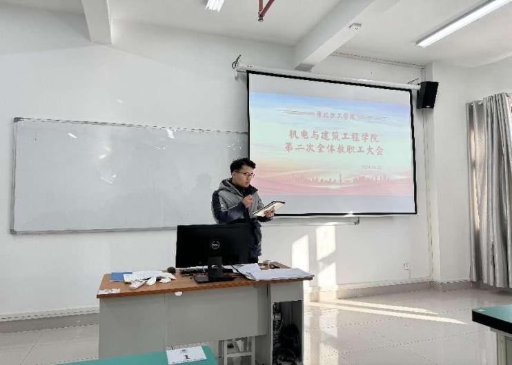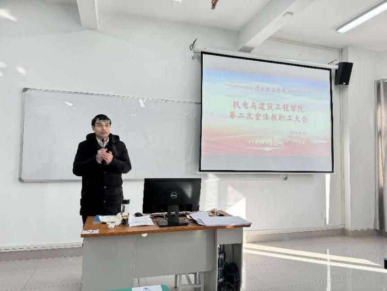 2024年122日下午机电与建筑工程学院在行政楼303室召开第二次教职工大会全体教职工参加本次会议,会议由机电与建筑工程学院党总支书记、院长张安宁主持。