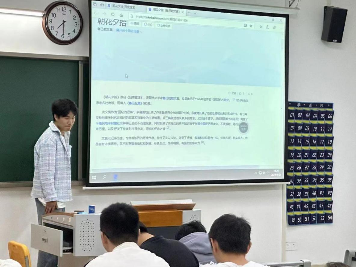 同学们在读完《朝花夕拾》后,深感鲁迅对社会现实的敏锐洞察力,在活动中同学们发觉开展读书会对个人和社会都具有重要的意义。刘海涛同学在活动中向同学们推荐了余华老师的《活着》,并分享了自己的读书心得,让更多的同学可以感受到阅读的魅力。
