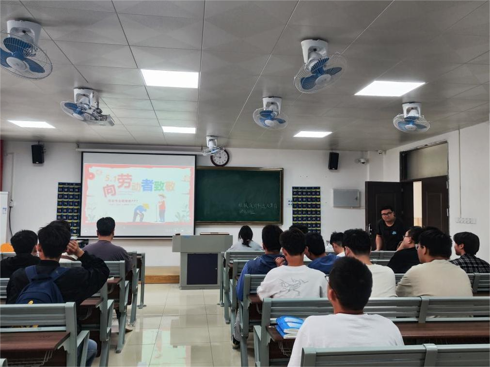 活动过程中,各班班长通过视频、PPT等形式,带领同学们了解“五一”劳动节在国内外的发展历程,随后深入学习了中国共产党人精神谱系中的劳模精神、劳动精神和工匠精神,引导同学们深刻领会其意义与内涵。