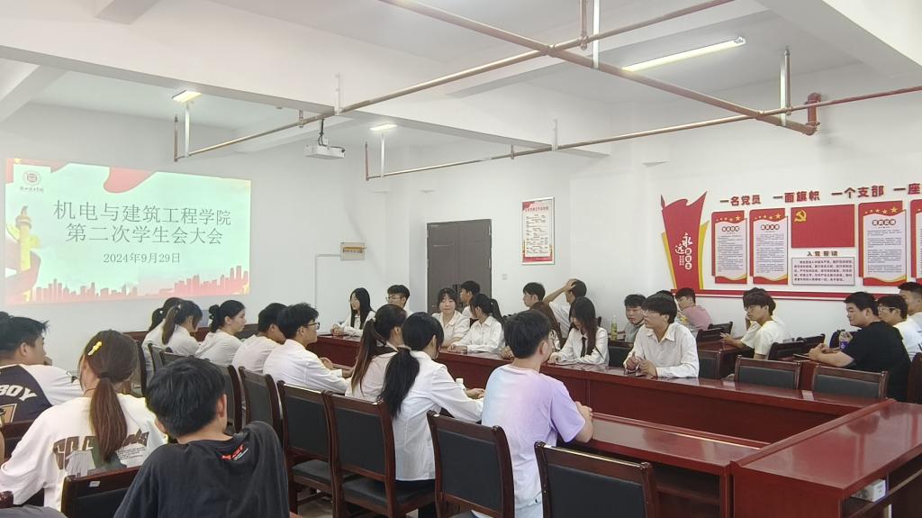 为强化学生会组织的凝聚力与责任感,充分发挥其在学院发展与学生成长中的积极作用,机电与建筑工程学院于2024年9月29日在行政楼214会议室举办了学生组织换届大会。此次大会汇聚了院学生会全体成员,旨在共同回顾过往的工作成果,审视当前形势,并规划未来的发展蓝图。