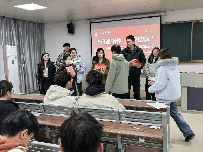 2026年全国硕士研究生招生考试初试将于12月20日正式开始,为给学院考研学子在冲刺阶段加油打气、缓解压力,12月16日下午,机电与建筑工程学院于一教320教室成功举办“研途相伴·暖冬助航”考研送温暖活动,为全体考研学生送上定制文具礼包与学院真挚祝福,学院党总支书记、院长张安宁、书记助理邓金鑫及毕业班辅导员老师共同参加,活动由张鹏老师主持。