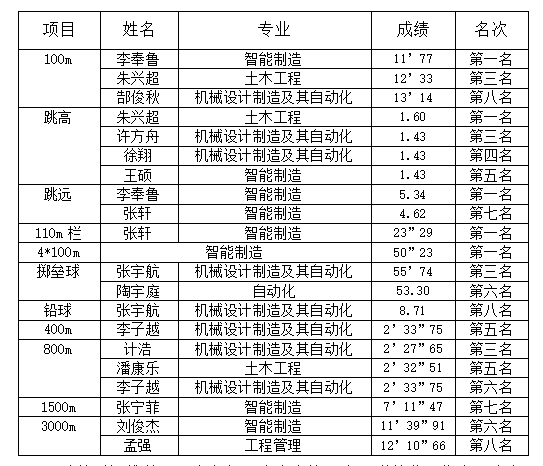 在赛场上,机电与建筑工程学院运动员们奋力挥洒汗水,积极拼搏,以优异的表现展现了机建学子的风采。经过激烈的角逐,他们在各类项目中均取得优异的成绩,为best365争光添彩。以下是机建学院运动员获奖名单: