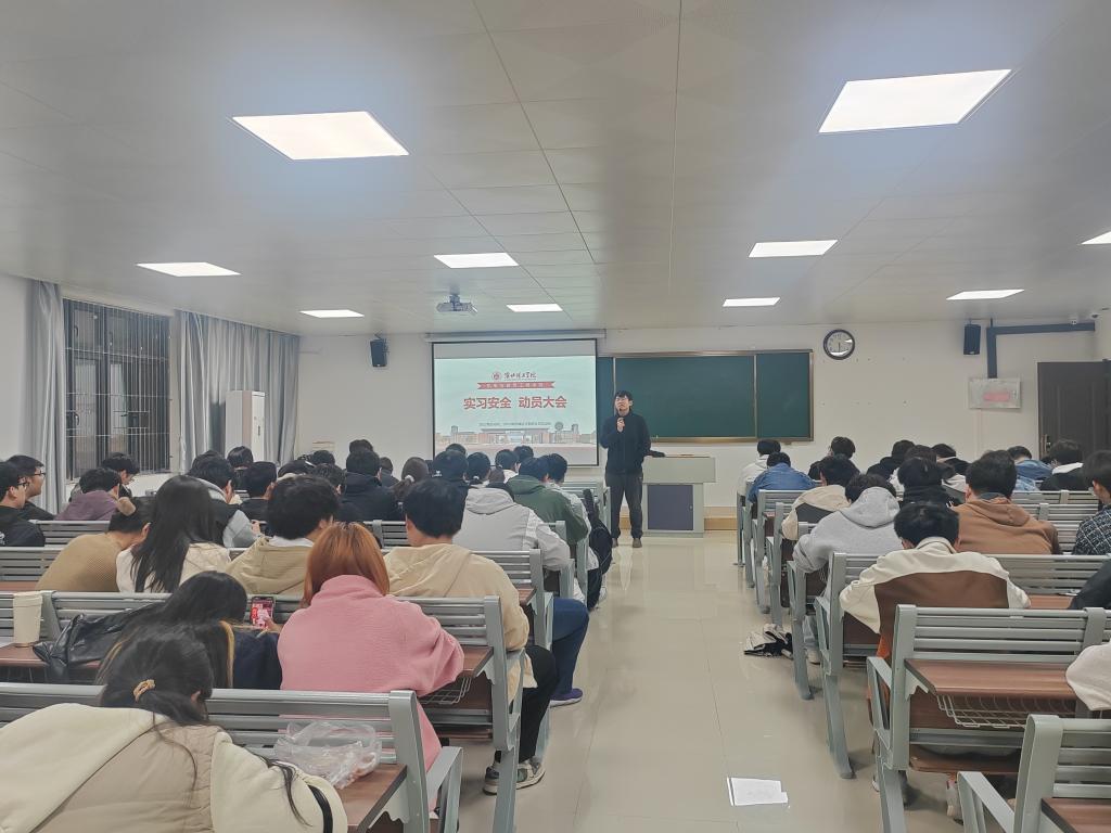 2025年11月7日,机电与建筑工程学院在一教320召开2022级毕业生实习安全动员大会,为即将于11月10日开始的毕业实习做好安全教育工作。2022级自动化专业和机械设计制造及其自动化专业全体学生参加会议,本次会议由学院辅导员张鹏老师主持。